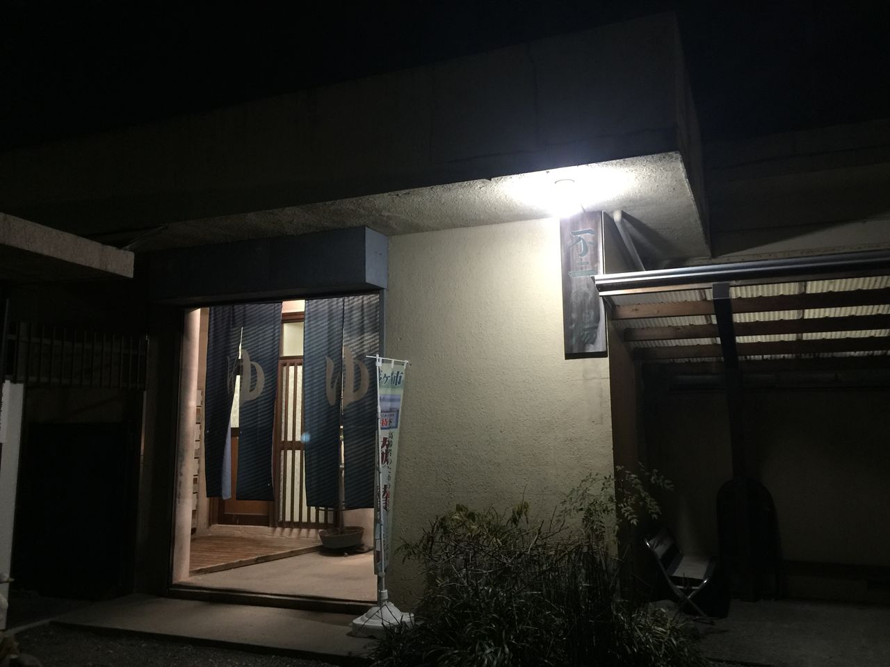 芥川龍之介の碑などを見てから戻ってくると、ちょうど女将さんが暖簾を掛けているところであった。