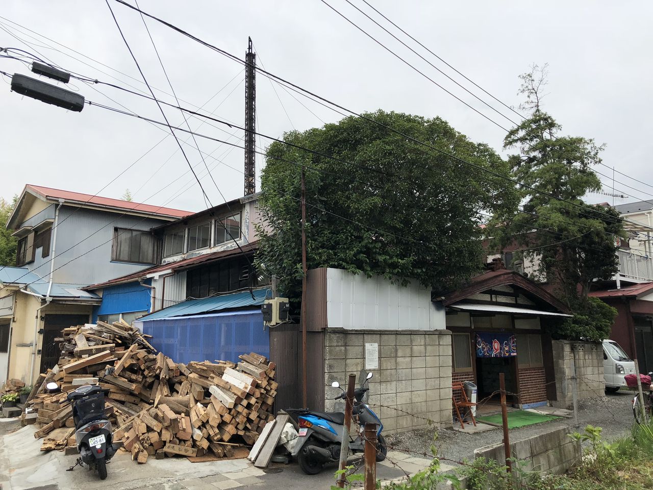 先日、気になっていた坂戸の廃業してしまった越の湯と近くの看板建築のその後を見に行く。