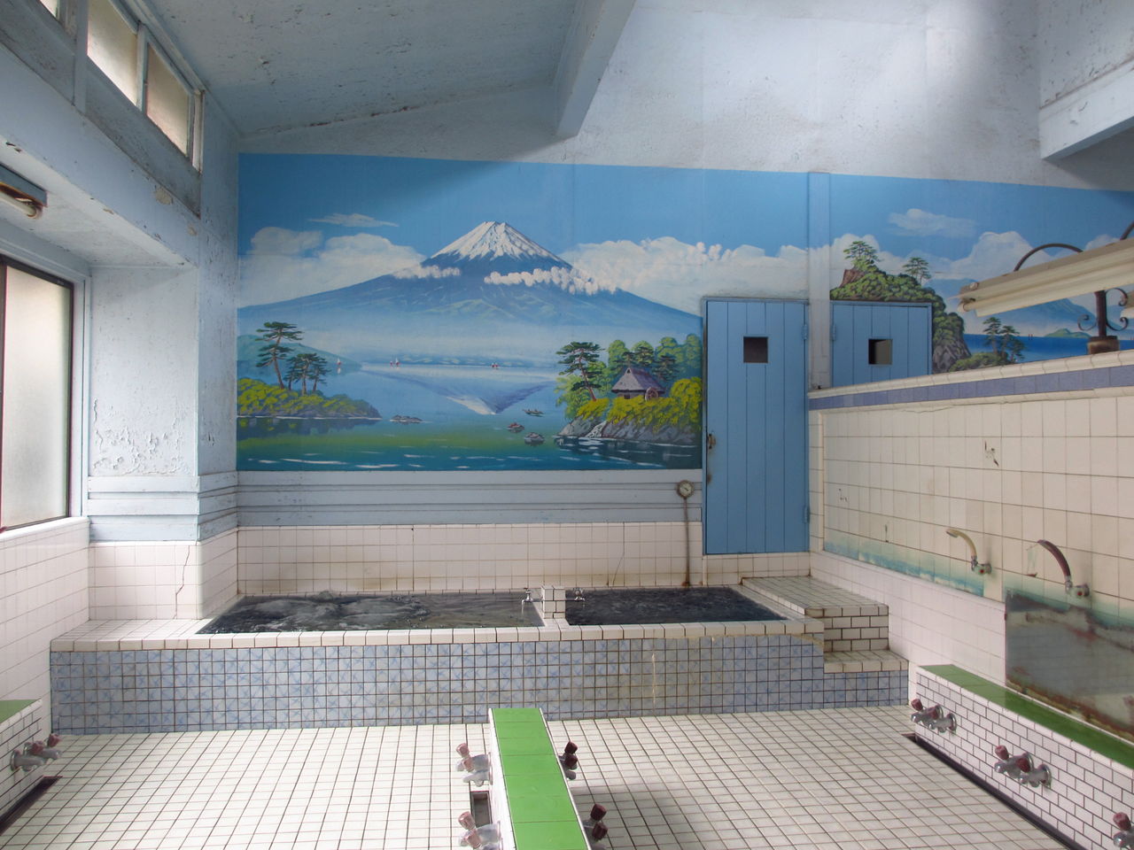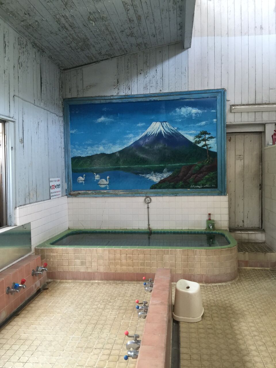 奥壁には中島絵師による富士山のペンキ絵(男湯)。